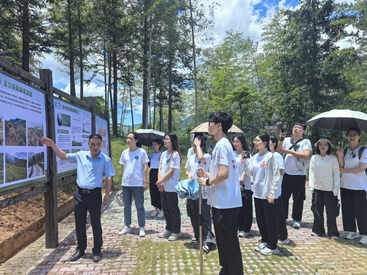 在长桥镇镇长的讲解下,队员们了解了千亩梯田的发展历程,借乡村振兴之势与粮食安全之力,以党建引领,建立合作社,实现土地扭转,复垦重现梯田,实现了粮食安全屏南行动1.0版到“我在屏南有亩田”3.0版的升级。队员们走在田埂上,看着绿油油的农田,感慨乡村振兴战略在柏源村的有力实行大幅提升了人民的生活水平,纷纷表示要努力学习专业知识,将理论融入于实践,在乡村振兴的道路上书写不一样的青年故事。