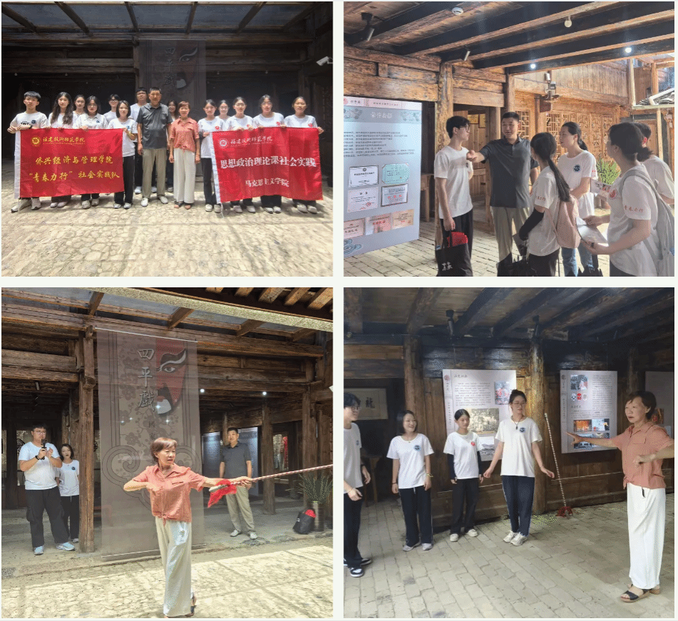 在全国乡村旅游重点村、第六批中国传统村落、第六批省级历史文化名村、省级乡村振兴试点村——熙岭乡龙潭村,屏南红粬黄酒酿造技艺传承人陈孝总与四平戏团长陈官购分别带领实践队员们参观了黄酒博物馆与四平戏博物馆,感受国家级非物质文化遗产“一台戏(四平戏)、一坛酒(龙潭酒)”独特魅力。