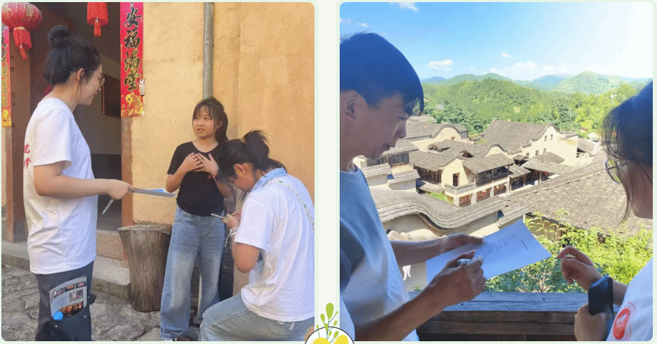 实践队一行还开展了问卷调查,与新老村民面对面沟通交流,了解到新老村民“共商共建共享”的合作理念,点亮了城乡融合、多主体参与、多业态共创的乡村生态产品价值化的乡村产业振兴之路,激发起队员们投身乡村振兴事业的责任感与使命感。