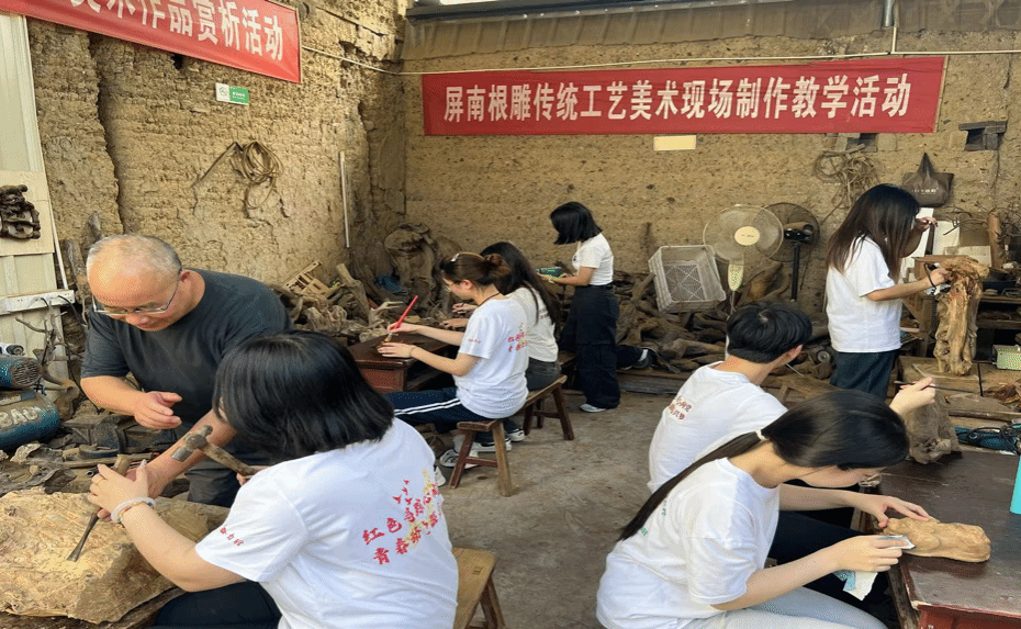 屏南县拥有多个中国传统村落、省级历史文化名村和丰富的非物质文化遗产。实践队前往屏南县长青根艺文化博物馆,聆听中国传统工艺美术大师、宁德市非遗传承人张长青老师讲解根雕知识。针对如何促进根雕文化的传承,以及中华优秀传统文化如何赋能乡村振兴与中国高质量发展等问题,张老师向实践队员们分享了自己的经验与建议,引导实践队员增强文化自觉,坚定文化自信,用青春力量助力乡村振兴。