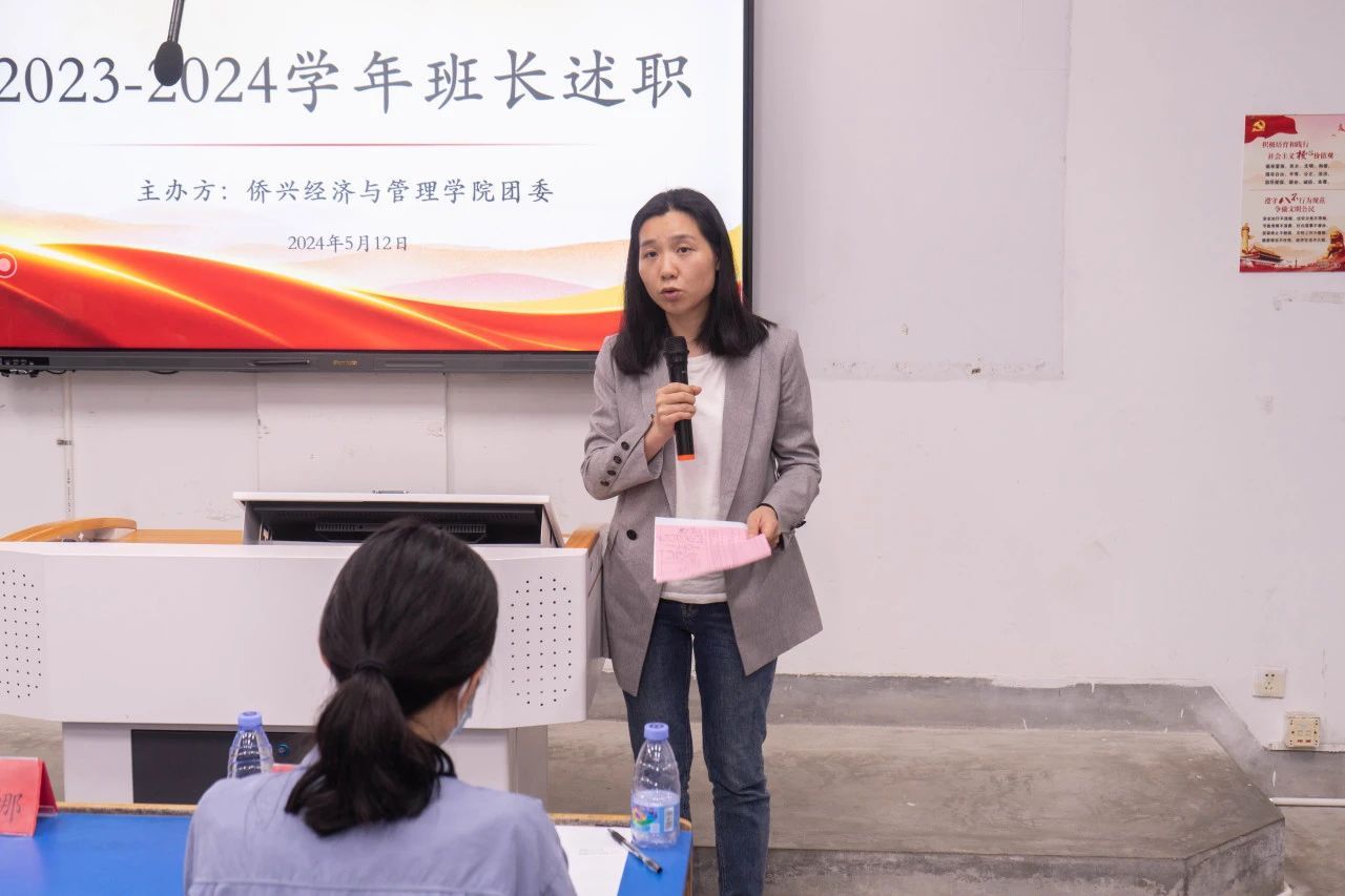 李娜老师进行点评、总结。她表示,本次述职大会不仅是班级的风采展示,也是一次班级间互相交流、学习进步的良好机会。班长是班级的中流砥柱,在班级管理中具有重要作用,应该发挥好“领头雁”作用,营造良好的班风学风,促进班级团结和发展。她强调,班级管理需要有明确的定位和规划,各班长要做好管理和服务工作,勇于承担责任,提升综合能力,带领班委们各司其职,各负其责,责任到人、责任到位,加强与老师、同学的沟通,创新班级活动,激发同学积极性,开展好各项工作,进一步提高班级凝聚力。