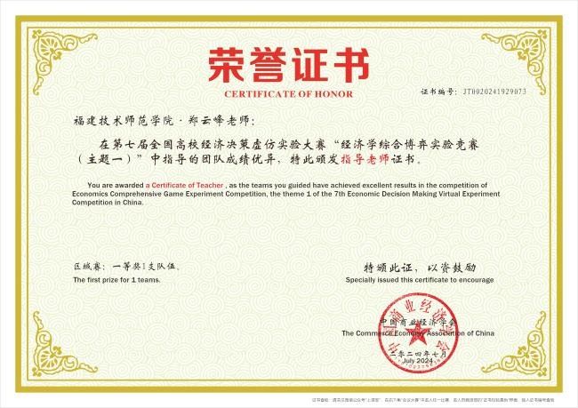 经过长达4个月的激烈角逐,我院行政负责人郑云峰指导的2021级经济与金融专业林双焱同学凭借前3.38%的优异成绩荣获一等奖,成功晋级全国总决赛。