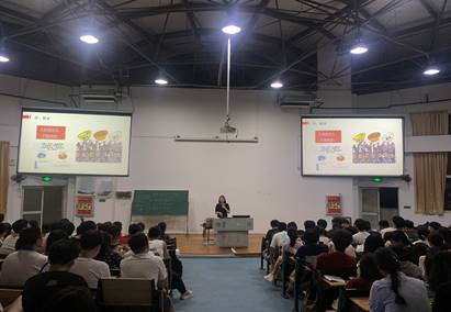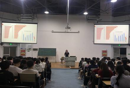 陈老师用直观的图表和数据,向同学们展示了近几年本科毕业生考研升学和就业的情况、趋势和特点,讲解不同类型的发展路径、阶段目标、岗位要求以及校园招聘等各种资源和渠道,介绍了考研、就业等去向的特点、准备过程和面临的挑战。她鼓励学生正确认识焦虑,突破茫然困局,尽早了解就业信息,主动做好职业规划,从容安排大学生活。