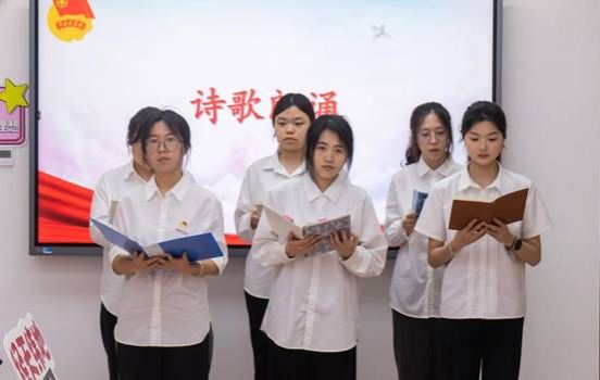 读书分享环节,11位同学开展近期阅读书目的心得分享,他们畅谈阅读感受,诵读精彩章节,交流收获感悟。《红岩》、《觉醒年代》的人物更加鲜活起来,《二十大报告辅导读本》、《中国新民主主义革命》、《习近平在福州》等又有了全新的理解和感受。活动现场氛围轻松,大家在浓浓的书香氛围中共享阅读乐趣。六位同学表演的朗诵节目《一路书香,一生阳光》将本次读书分享会推向高潮。
