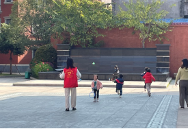 幼儿园的志愿者们以饱满的精神陪小朋友做游戏,让他们在人生最重要的童年时光里收获快乐,收获幸福,拥有健康的心灵和身体。