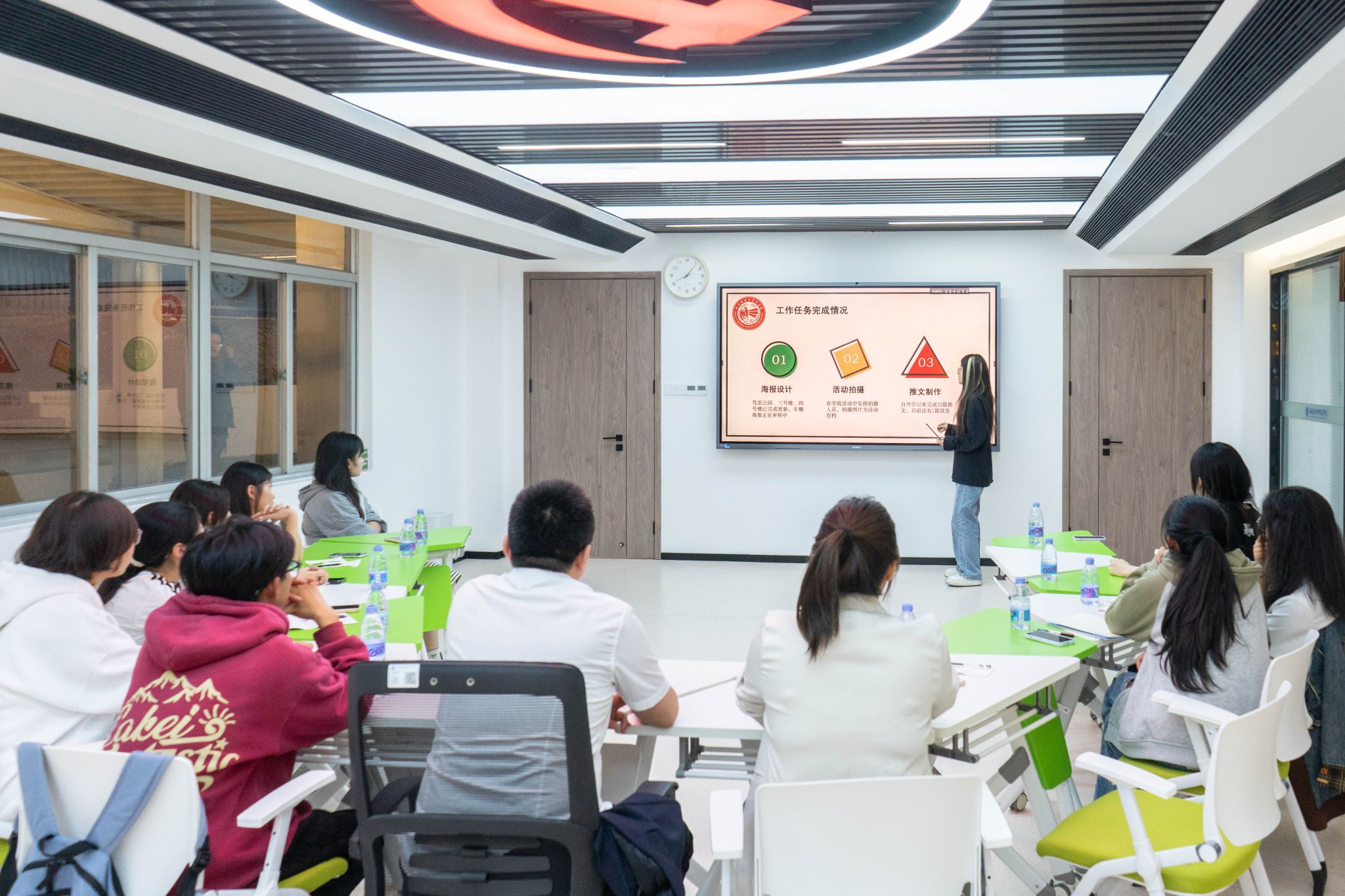 首先,学院学生会新媒体中心成员逐一进行了自我介绍。随后,王亚苹老师回顾和总结了近期学院新媒体建设的工作进展,并围绕着新闻稿撰写、照片拍摄、推文制作等方面进行了详细地讲解,并对下一阶段工作提出要求。部门代表2023级经济与金融专业杨欣妍同学,汇报了近期工作,围绕下一阶段工作提出了工作思路。