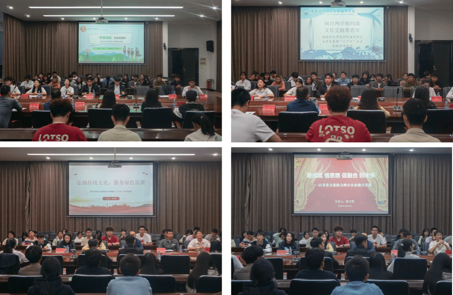 在团队实践交流部分,受邀的食品与生物工程学院、材料与包装工程、艺术与传媒学院、海洋学院等学院的7支优秀实践队代表,围绕闽台两岸融合、传统文化传承、红色血脉赓续等主题展示了一系列生动的社会实践案例,分享了各自的实践成果、实践经验。