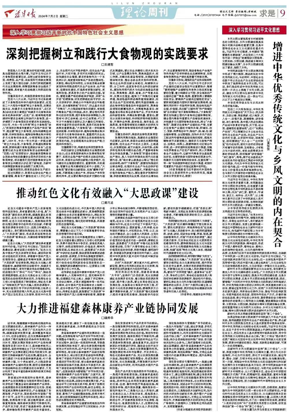 7月2日,《福建日报》理论周刊求是版刊发学院副院长(主持工作)魏秀华教授理论文章《大力推进福建森林康养产业链协同发展》。文章全文如下: